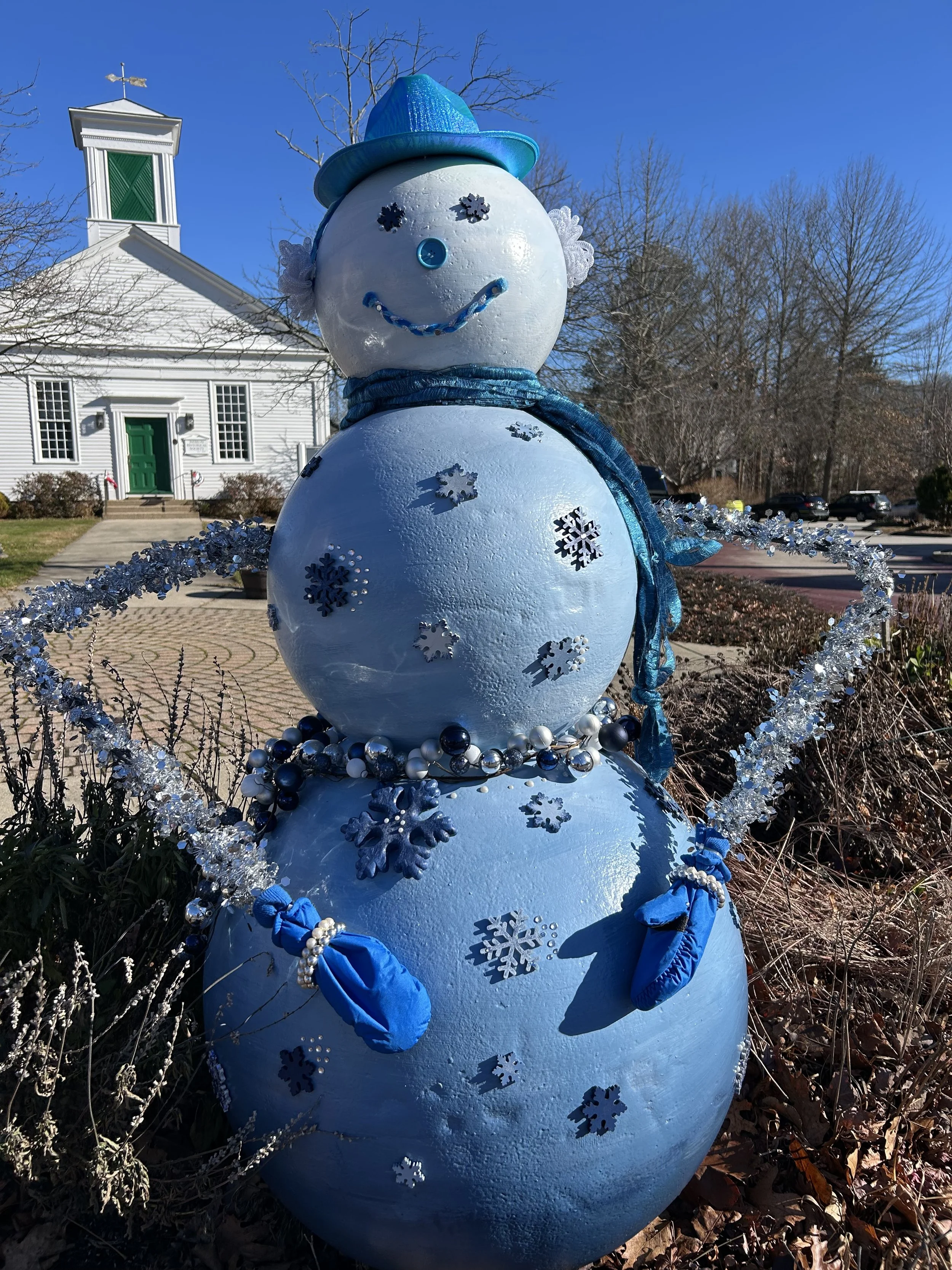 Judy is an abstract artist, and outside of her painting, she is passionate about creating a vibrant community. Her original SnoFolk, reimagined into Flower Girl. A lovely display of all things green, springy and fresh! Gracing our snow covered Main Street while keeping an eye towards spring!